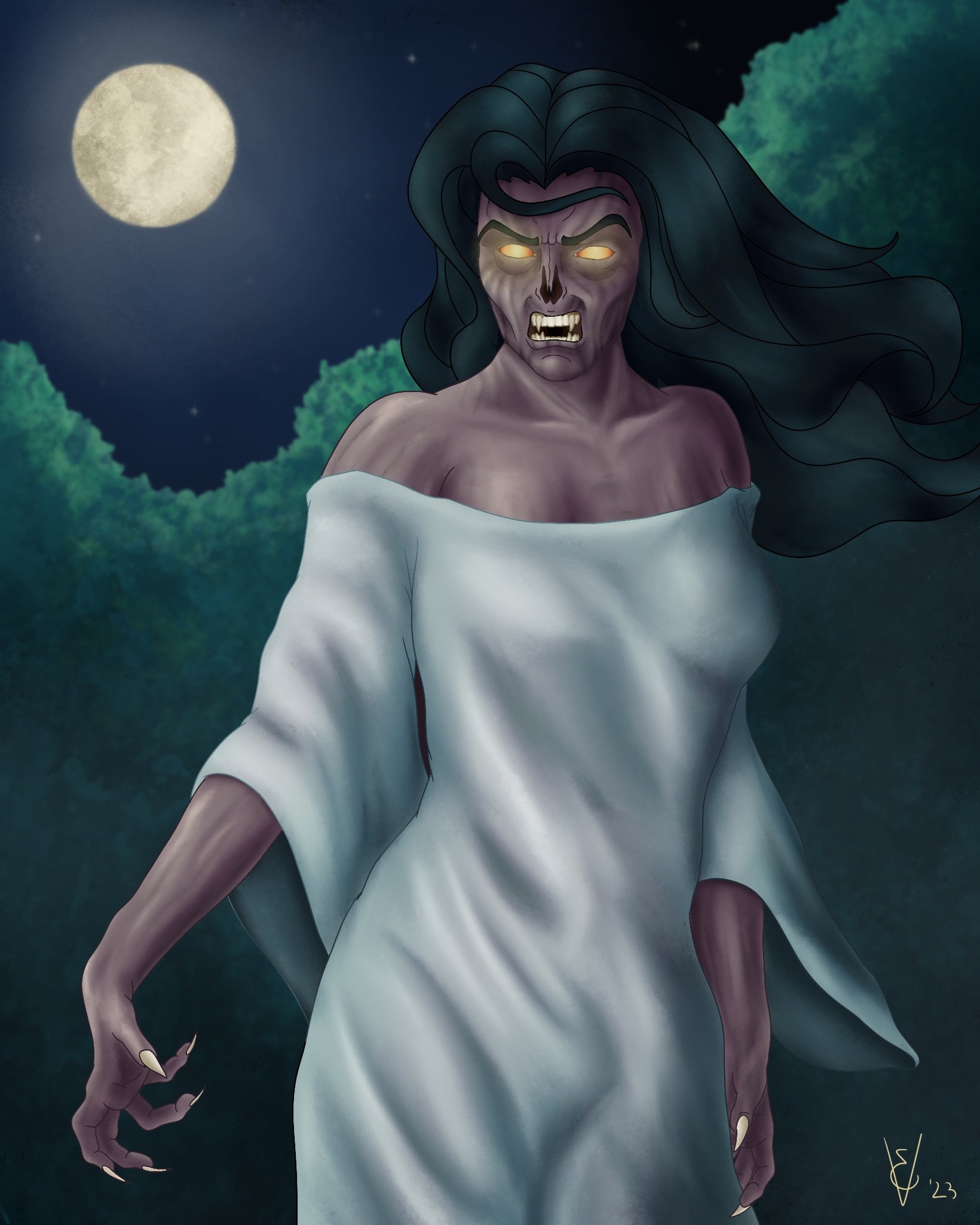 La Siguanaba (Hideous Woman in Nahuatl language), is a legendary figure from El Salvador mythology. She was once named Sihuehuet (Beautiful Woman), who had an affair with the son of the god Tlaloc, and gave birth to her son Cipitio. She was never a good mother, and would constantly neglect her son. For this, Tlaloc cursed her, and granted Cipitio eternal youth. Now, La Siguanaba haunts the rivers, where she lures unfaithful men in with her beauty, just to reveal her monstrous true form.